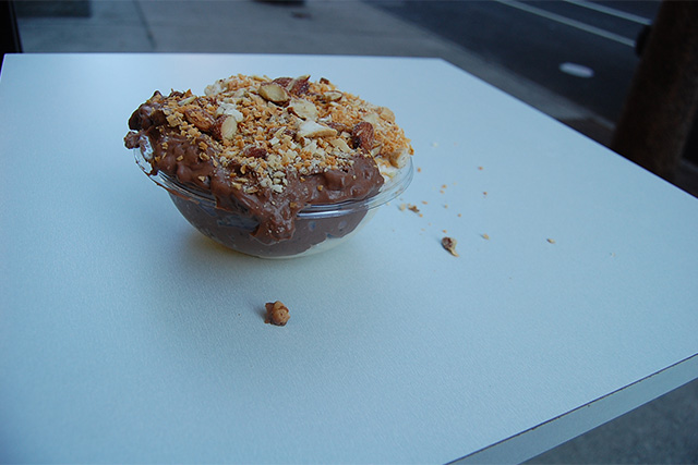 Offering 20 different flavors and a menu that is almost entirely gluten-free, apart from cookies-n-cream, s’mores tiramisu and several toppings, there are plenty of options to choose from. Not to mention, they serve 8 vegan flavors! I had the opportunity to sample all of the gluten-free flavors, and my favorites included original, coconut, vegan dulce de leche and bacio. When it came to ordering, I went with a coconut and bacio mix, topped with roasted almonds and toasted coconut, while my friend stuck with the original, sprinkled with cinnamon! Both were equally delicious and brought me back to the days when I used to live off this stuff–why had I ever stopped?!