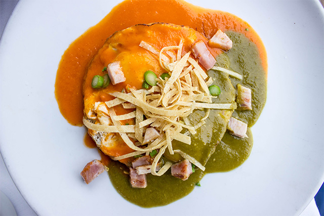 For the next course, we ordered the Huevos Rosa and the Mahi Mahi tacos. Before I dive into the delicious details of these dishes, I must mention I was convinced by my server to order a frozen pomegranate margarita. I usually shy away from frozen margs because I’m scared they will be too cloyingly sweet, but this margarita was perfect. I could actually clearly taste the flavor of the pomegranate and the margarita, because the drink wasn’t loaded with unnecessary sugar. In addition to being delicious, the drink was also a bright pink color, which was very visually stunning.