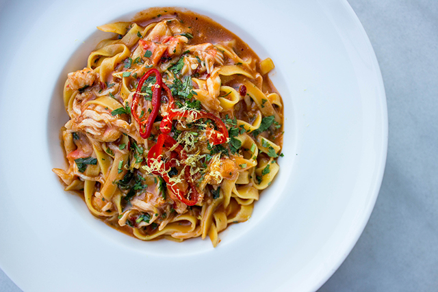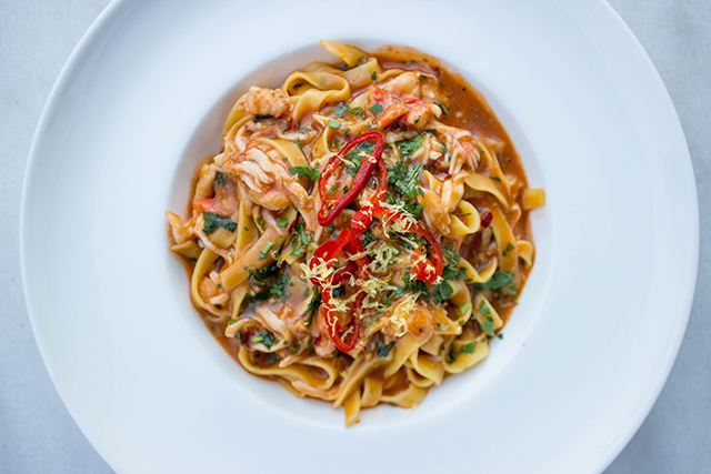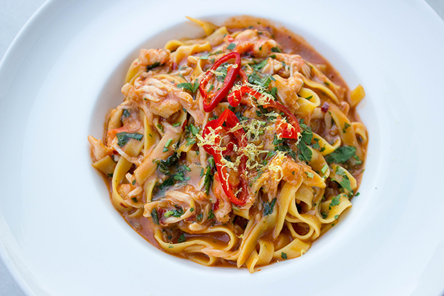 Next came spicy king crab pasta, a delightfully luscious addition to my meal. The gluten-free pasta was really in a league of its own here – completely tender and flavorful, and not overly starchy like many gluten-free pastas turn out to be. The spicy crab sauce was so thick and delicious it reminded me more of a gravy than a typical pasta sauce, to which I had no complaints. In this course, I also ordered the giant prawns, which really lived up to their name. These things were huge! Typically the prawns are not on the gluten-free menu for whatever reason, but the chef was able to accommodate the dish to my needs without sacrificing any of the flavor.