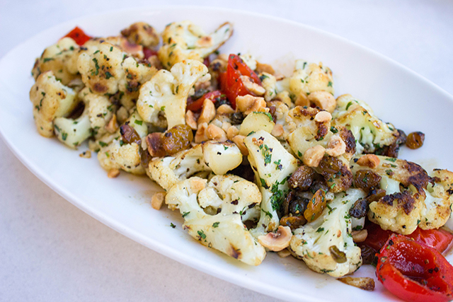 For the main course, I enjoyed the grilled swordfish. This meaty fish was a joy to look at and consume. The grill marks were flawless, making the dish aesthetically pleasing, and the red pepper tapenade plated on top added an element of excitement to typically predictable protein. As a side to accompany the swordfish, I ordered the cauliflower and hazelnuts. I can tell you that cauliflower is usually the last thing I’d order at a restaurant, but my server suggested I order the dish and they really came through. The cauliflower was roasted to perfection, and the addition of toasted hazelnuts and golden raisins created an amalgam of flavors that really worked nicely together.