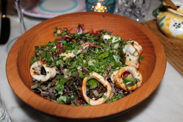 What strikes me the most about Santina is how gluten friendly the restaurant is. The entire menu is essentially gluten free, the majority is dairy free, and everything is absolutely amazing. To start, you have to order one of the Cecina dishes. Select one of the delicious fillings (my friends and I went with the avocado trapanese) and create your own crepe/taco out of the beautiful, and nobread approved, chickpea pancake. If you’re an avocado lover- order this… you’ll thank me for it. For our next round, my friends and I moved on to the Vegetables + Fish section of the menu. The artichokes & grapes is a must order, and the radish & cured salmon dish is beautiful and tastes just as lovely. I also had my eye on the squash carpaccio, but it is cooked in butter so if you are dairy free I recommend avoiding. From the Salad section of the menu, we ordered the kale sunchoke salad (amazing) and wild rice calamari (really amazing). Calamari is mixed in with wild black rice, and the combination is awesome. For the rice and pasta lovers, all rice dishes are gluten free, and gluten free pasta is available upon request for the pasta dishes, so all pastas can be GF, too!