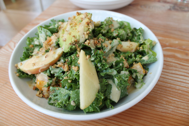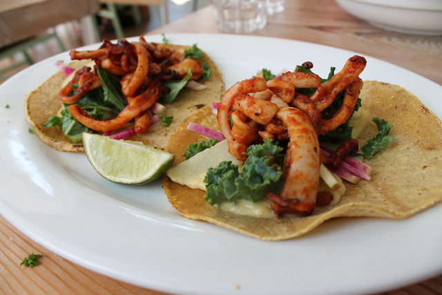 A blackboard in the back of the restaurant lists local fish and orange wooden spoons are placed next to the fish served in the restaurant that day. The main dish at Seamore’s is The Reel Deal, and the concept is simple. Pick one of the daily fish, pick a sauce, and enjoy your pesce over daily vegetables and grains. All sauces are gluten free, and the staff if happy to provide recommendations for sauce and fish pairings. The daily sides are subject to change. During my visit the offerings were couscous, bok choy, and corn. Unfortunately, the couscous and bok choy were not gluten free, but the restaurant doubled up on corn and kale so the dish was just as yummy and filling. Not that I’m a food critic, but the fish of the day, Flounder, was served salty. I LOVE salt and add it to everything, so this was right up my alley. If you’re a fish taco person like myself, you’re in luck. The tacos are served on corn tortillas and are gluten free, except for the crispy fish taco. The seared seasonal fish taco is awesome and the spicy squid is very hot! Sandwiches at Seamore’s are a no-go, as are the sweet potato fries, but with so many other gluten-free options you won’t feel as though you are missing out! Lastly, I highly recommend the kale and avocado salad. The salad is filling and filled with walnuts, squash, and quinoa. Top your salad off with a fish of the day for a more satisfying meal!
