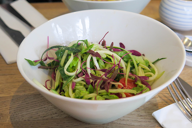 We tried the scrambled eggs (Clarence Court) with House-Cured Var Salmon and a side salad. Both were made gluten-free by leaving out the Rye bread. The eggs were creamy and the smoked salmon was fresh and absolutely delicious! The side salad was a light and refreshing addition to breakfast. We also had the Kedgeree, which has a bit of a cult following at Snaps & Rye and I can understand why! A fragrant combination of rice, smoked haddock, cured salmon, tomato, and spinach with a soft boiled egg on top made this the quintessential brunch dish!