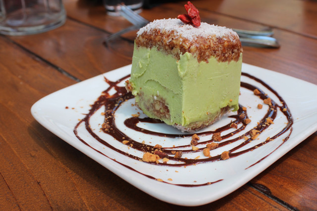 If you are vegan, gluten-free, and craving comfort food, SunCafe is your spot. The popular Mac & Cheese made with quinoa pasta and cashew cheese is surprisingly creamy, cheesy and flavorful. The GF pizza, however, was definitely my favorite. Several variations of pizza are offered, like Margherita, pesto, and fig. I tried the daily special which was a Mexican pizza. I have tried many GF pizza crusts before, and SunCafe is 100% up there with the best of them! I’m glad I had the opportunity to try the lettuce leaf tacos because I was skeptical about the “SunChorizo,” a vegan chorizo substitute. Although it tasted far from the real thing, I thought it was delicious and flavorful. I also loved that SunCafe used nuts to create meat substitutes, unlike some vegan places that only incorporate soy-based products. Next time I visit, I’m definitely ordering the vegan nachos with the SunChorizo, nacho cheese, guacamole, pico de gallo, jalapeño, green onion, & cashew sour cream. Sun also offers smoothies, salads, tacos, curry, burgers, and an entire brunch menu. You can’t leave SunCafe without trying one of their incredible desserts! My favorite was the pistachio ice cream sandwich made with coconut milk based ice cream. However, the almond butter cheesecake was exceptionally decadent and delicious, as well.