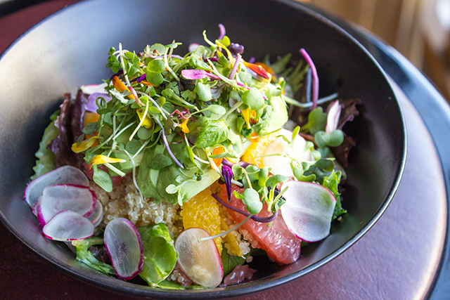 To kick the meal off, I opted for the stuffed squid, which was filled with house made sausage, topped with a beautiful tomato sauce, and served with a side of arugula. If you know me, you know I order squid every time it’s the on the menu, and I can say this is unlike any dish I have ever had. It reminded me of stuffed cannelloni, but with squid instead of pasta. The sausage was wildly flavorful, and made this dish a standout on the menu. As another visually stunning appetizer, we ordered the market salad, which on this day involved quinoa, micro-greens, radish, grapefruit, and a light dressing.