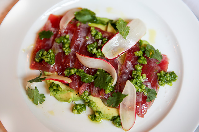I had quite a variety of gluten-free menu items at The Allis and they all tasted delicious. I started with the Crudité and Hummus. The dish was very colorful and so beautifully presented, I didn’t even want to eat it! The crunchy veggies gave it a great texture and the hummus had the perfect amount of flavor. Next, I had the Roast Delicata dish with pomegranates and pumpkin seeds. I loved how the combination of ingredients tasted. When I tried the Tuna Crudo paired with avocado and a green salsa verde, it was light and refreshing. The roasted brussels sprouts dish was the most flavorful one I had! The mix of hazelnuts and currants added the perfect pop of incredible flavor. Finally, I had one of the most popular menu items: the avocado toast. The gluten-free bread had a great texture and there was a TON of avocado piled on top! The chef finished off the dish with a soft egg and pepper flakes on top. Another favorite dish of mine was the Ribollita Soup with white beans and kale. It’s not too often that you see a restaurant serve a gluten-free soup, so whenever I see one I have to give it a try. As a whole, every aspect of my meal was fantastic!