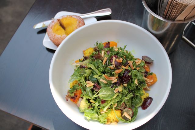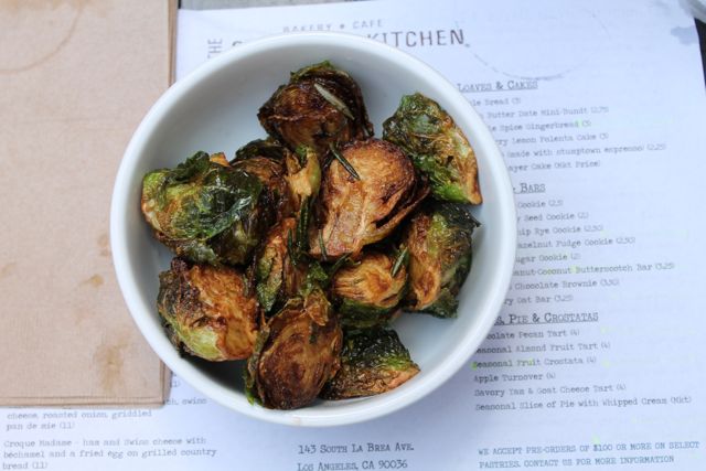 For breakfast, I HIGHLY recommend the house-made coconut pecan granola with toasted pepita and cold milk. The granola is 100% gluten free, and really awesome. Unfortunately, there is no gluten free bread offered at the restaurant, so tartines and sandwiches are off-limits. All sandwiches, however, can be made gluten free if you ask for no bread! For breakfast/brunch, I also highly recommend the pork hash which is served with roasted peppers and onions, russet potatoes, two fried eggs, and spinach. I have a little secret for you! There is a veggie hash alternative to the pork belly hash for the vegetarians out there! This option isn’t on the menu… it’s one of Sycamore’s best kept secrets! For lunch, you HAVE to order a salad. The salads are unique and inventive, and both filling and flavorful to top it off! The curry roasted cauliflower and butternut squash salad is one of the best salads I have ever had. It’s finished with avocado and grapes, and perfect for vegans/vegetarians, too! Lastly, The Sycamore Kitchen might have the best brussels sprouts in LA!! The sprouts are roasted and drizzled with maple glaze and rosemary. They ARE subject to slight cross contamination risk, however, so if you are ULTRA sensitive you will have to skip this phenomenal creation.