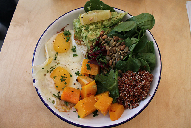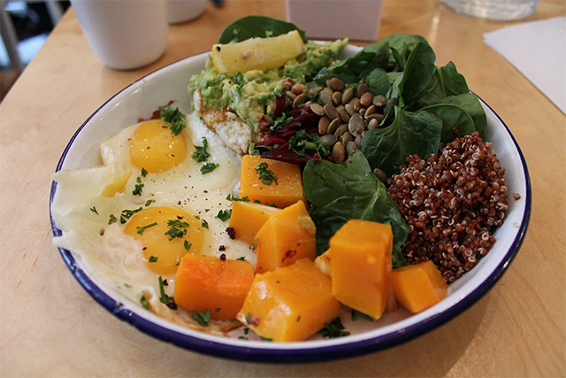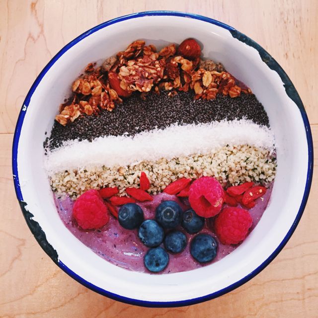 The menu at Two Hands features drinks such as juices, smoothies, milkshakes and a variety of teas and coffees, as well as some pastries and light snack/lunch options. My heart was immediately set on the Acai Bowl—an Acai mix of frozen blueberries and bananas with cacao, acai powder, and almond milk, topped with gluten free granola, hemp and chia seeds, coconut, cacao nibs, blueberries and raspberries! Immediately after the first bite, I was transported to the tropics of Brazil; the berries were incredibly juicy and fresh! The sweetness of the Acai base paired well with the slightly bitter cacao nibs, and the granola gave the dish a nice crunch—a perfect balance of flavors and textures! Two Hands caters to the healthy crowd as well as those who like to indulge every once in awhile without feeling too guilty. Even though the menu isn’t completely NOBREAD friendly, they do offer several gluten-free options such as a granola bowl, fruit salad, and a variety of sides—toasted tomatoes, chorizo, and bacon! The Avo Toast at Two Hands is incredibly popular; however, the cafe doesn’t have gluten-free bread, so the gluten-free crowd will have to opt out from this hot item.