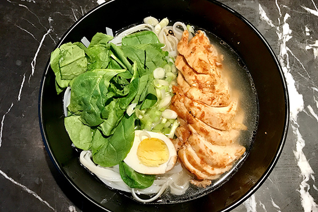For the mains, we went with the chicken itame, which was one of the most popular dishes on their main menu, and also on the gluten-free menu. A thick coconut and lemongrass curry dish with rice noodles, veggies and chicken. We couldn’t leave without trying their popular ramen, so we ordered the chicken ramen, also with rice noodles, seasonal greens and a hard-boiled egg. The broth was light and delicious. There were two GF dessert options: vanilla bean ice cream with a passion fruit sauce, and a coconut ice cream also with a passion fruit sauce and coconut flakes. We tried both. They were simple, but you could taste the quality of the ingredients. A great way to finish our meal!